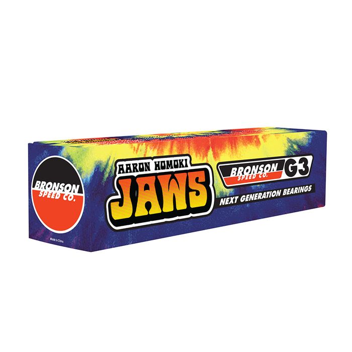 Bronson Speed Co is proud to release Aaron JAWS Homoki's signature G3 bearing. JAWS' signature bearing features a tie dyed Pro Colorway and "JAWS" laser etched on the outside bearing ring. GO FAST, STAY FAST on JAWS' signature bearing.